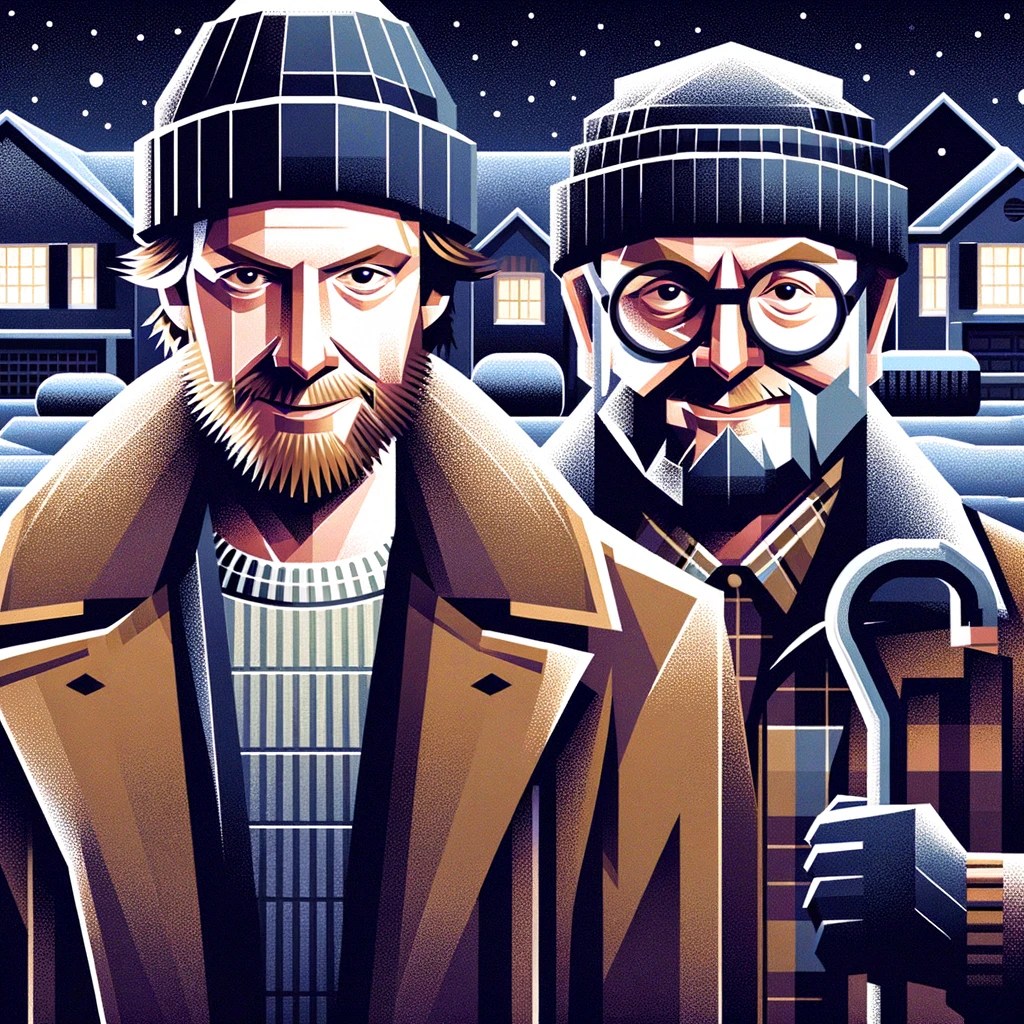 Le succès de Maman, j’ai raté l’avion repose grandement sur ses acteurs principaux. Dans le rôle de Kevin McCallister, Macaulay Culkin nous gratifie d’une performance remarquable, qui mêle espièglerie, ingéniosité et une touche parfaitement dosée de vulnérabilité. Qu’il hausse les sourcils de manière facétieuse, hurle après avoir appliqué sur ses joues une lotion après-rasage, s’empiffre devant des films noirs peu adaptés à son jeune âge ou panique à la vue d’un voisin qu’il pense être un tueur en série, le comédien s’approprie avec brio son personnage. Joe Pesci et Daniel Stern, qui incarnent respectivement les cambrioleurs Harry et Marv, apparaissent dans un contraste comique parfait, avec leur maladresse et leurs réactions outrées. Non seulement ils tombent de manière pathétique dans tous les pièges tendus par Kevin, mais ils y ajoutent ces effets à décantation lente (plaintes, mimiques, etc.) qui en redoublent le potentiel comique. Cette dynamique entre le jeune garçon et le duo de cambrioleurs crée un équilibre entre tension et humour, essentiel dans la comédie de Chris Columbus.